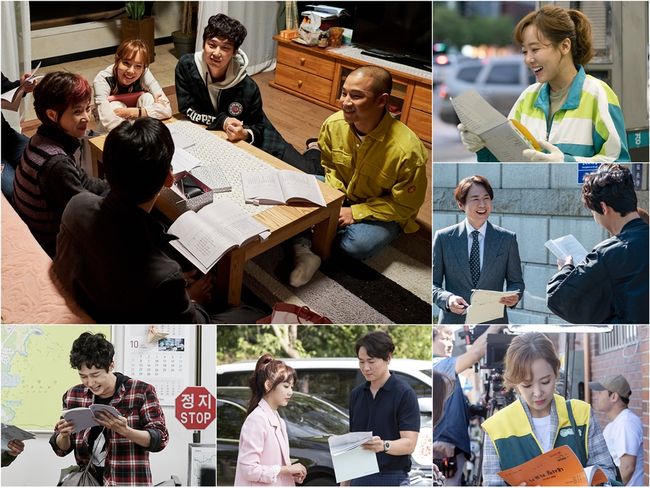 제작진은 8일 소유진 연정훈 윤종훈 등 출연 배우들이 화기애애한 현장을 자랑하는 대본 탐독 모습을 공개했다. 가족처럼 오순도순 모여앉아 대본을 펼쳐놓은 채 이야기를 나누는 현장 대본 리허설을 진행하는가 하면, 길에 선 채 분장을 바꾸면서도 대본을 손에서 놓지 않는 ‘대본 사랑’을 내비치고 있다.