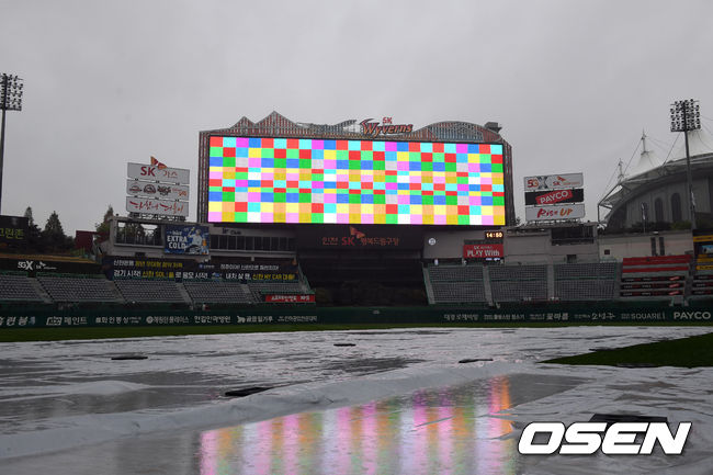 기상청은 한국시리즈가 열리는 인천 지역에 경기 개시 시간인 오후 6시 30분 무렵 약 20~30mm 가량 비가 내릴 것으로 예보했다. 많은 비에 강우확률도 90%에 이른다. 새벽부터 빗줄기가 꾸준히 내리면서 그라운드 상태도 경기를 진행하기 힘든 상황이 됐다.