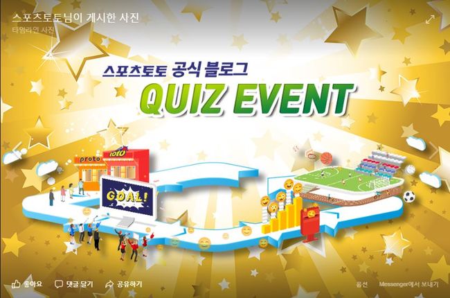 이번 공식 블로그 퀴즈 이벤트는 스포츠토토 페이스북 내 페이지를 방문해 주어진 3가지 문제를 확인하고, 이 퀴즈에 맞는 정답을 맞히는 방식으로 진행된다.