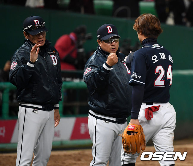 연이은 한국시리즈에서도 처음 경험하는 상황이다. '어우두(어차피 우승은 두산)'이라는 말로 느슨해질 수 있었다. 하지만 한국시리즈의 흐름이 두산이 생각했던 것과 다른 양상으로 이어졌다. 당황할 법 하지만, 시리즈의 분수령이 된 경기를 잡아냈다. 선수단 스스로 긴장감을 다잡는 계기가 됐다.