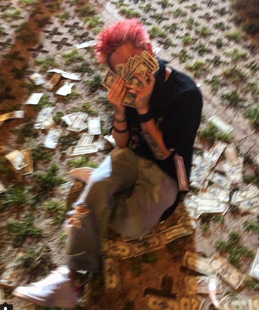나플라는 10일 새벽 자신의 SNS에 "Mama im goin up"이란 짧은 메시지와 함께 사진 한 장을 올렸다. 사진에서 그는 바닥에 앉아 소품 돈을 잔뜩 들고 기쁨을 만끽하고 있다.
