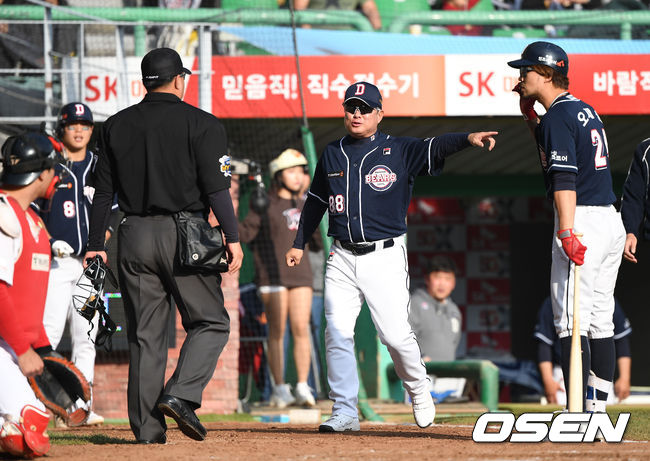 오재원은 보크라고 강력하게 항의를 했지만, 심판은 이를 받아들이지 않았다. 김태형 감독도 나와서 강력하게 어필했지만, 역시 판정은 번복되지 않았다.