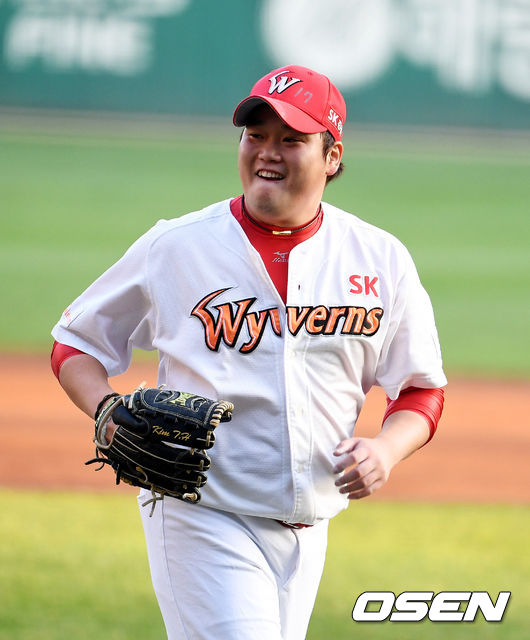 절친 선발 투수 박종훈 보다 먼저 첫 승을 거둔 소감에 대해 김태훈은 "형인 내가 먼저 하는 게 맞는 것 같다.(웃음) 선발 투수보다 먼저해서 영광이다"라고 미소를 지었다.