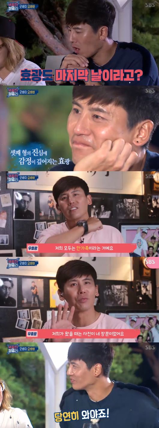 패밀리를 대표해 오늘 하루종일 여행을 함께 한 류수영이 입을 열었다. 그는 "우효광을 위해 중국어를 공부해도 막상 잘 안 됐다"면서 언어라는 장벽을 넘기 위해 노력했던 시간들을 떠올렸다. 그러면서 효광에게 "밝게 잘 지내줘서 고맙다, 정말 좋은 사람같다는 확신이 들었다"면서 "한국에오면 무조건 우리집에 와라"면서 지금 뿐만 아니라 앞으로도 이를 계기로 인연을 이어가기로 약속했다. 셋째 형, 류수영의 진심에 감정이 깊어지는 듯 효광은 눈물을 흘렸다. 수영은 떠나는 효광을 마지막까지 배웅했다. 효광 역시 "베이징으로 와라"면서 조만간 다시 만나자고 약속했다. 진심으로 서로를 생각한 두 남자의 우정이 지켜보는 이들까지 눈시울을 뜨겁게 했다.