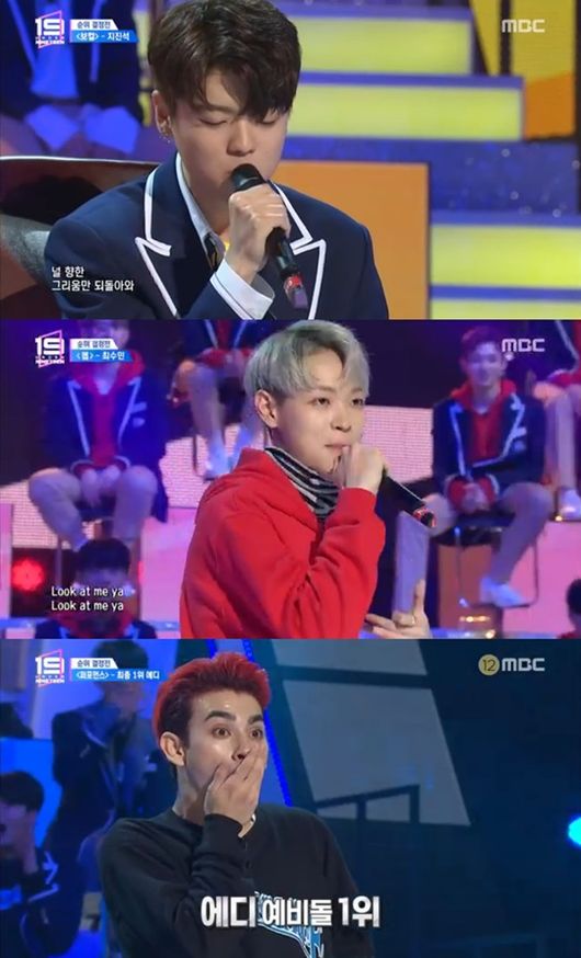 '언더나인틴'의 보컬팀 지진석, 랩팀 최수민, 퍼포먼스팀 에디가 각각 팀 1위를 차지하면서 첫 순위결정전의 피날레를 장식했다.
