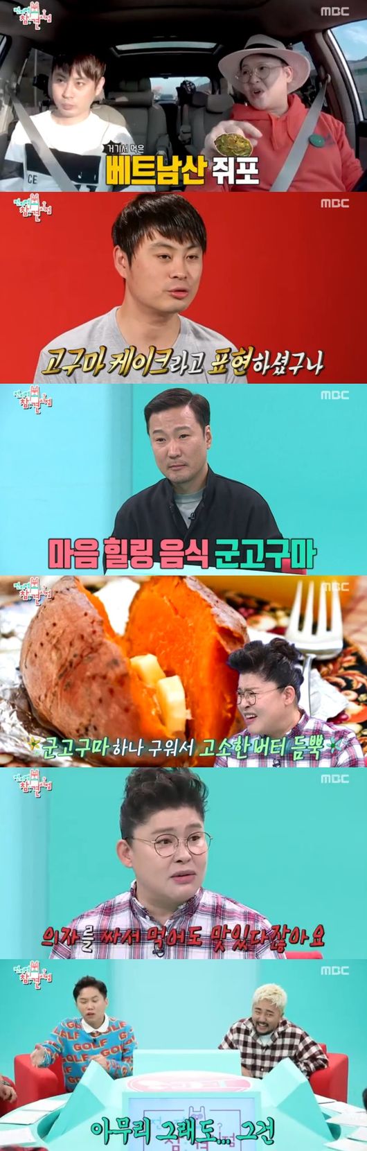 이영자는 송팀장과 함께 소백산 소울푸드를 맛봤다. 소백산 아래에서 먹는 고구마에 대해 이영자는 "내 인생 고구마"라면서 바삭함 속에 부드러움이 숨어있다고 했다. 송팀장은 고구마 케이크라고 표현한 이유를 인정했다. 양세형은 "체했을 때 한방통닭, 목감기엔 만두전골이라면 군고구마는 뭐냐"고 질문, 이영자는 "영혼이 허기질 때"라면서 마음의 힐링 음식이 군고구마라고 했다. 이어 "고소한 버터로 급하게 치료해줘야한다"고 했다. 모두 김치와 고구마 조합을 묻자, 이영자는 "김치는 고구마의 맛을 자기화시킨다, 김치는 의자를 싸서 먹어도 맛있는 것"이라고 말해 배꼽을 잡게 했다.