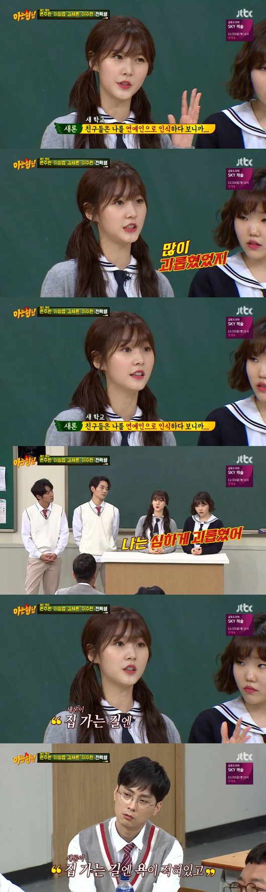 김새론은 10일 오후 방송된 JTBC 예능 ‘아는 형님’에서 절친한 사이를 자랑하는 가수 이수현(20)과 동반 출연해 학창시절에 대한 이야기를 전했다.