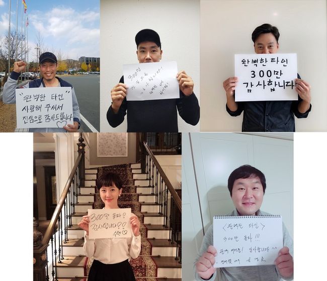 ‘완벽한 타인’의 300만 돌파를 기념해 배우들도 관객들에게 손글씨 축하 메시지를 전했다. 잘 보일 수 있도록 여러 번 글씨를 덧대 쓴 유해진, 한 자 한 자 붙여 감사 메시지를 만든 이서진, 영화 속 캐릭터의 이름 수현으로 인사를 전한 염정아 등 배우들의 진심과 개성이 가득 담긴 메시지가 훈훈함을 더한다.