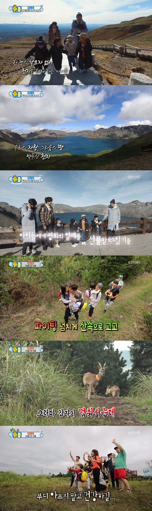 그곳에서 슈퍼맨 가족들은 천지의 모습을 눈으로 담는가 하면 소원을 빌고 인증 사진을 찍는 등 즐거운 시간을 보냈다. 특히 사랑둥이 승재가 애국가를 열창해 시청자에게 특별한 감동을 선사하기도. 백두산 천지에서 부르는 애국가이기에 그 의미가 남달랐기 때문이다.
