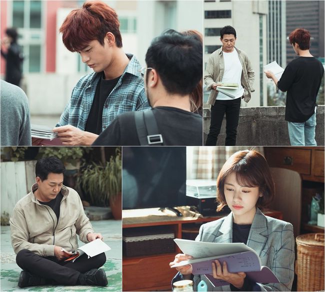 박성웅은 맨바닥에 주저 앉아 대본을 탐독하고 있어 눈길을 끈다. 장소에 상관없이 어디서든 대본에 집중하고 있는 모습에서 그의 남다른 연기 내공을 엿보게 해 절로 고개를 끄덕이게 만든다. 특히 서인국-박성웅이 함께 대본을 맞춰보고 있어 관심을 사로잡는다. 극에서는 서로에게 날을 세우는 대립 관계지만 실제로는 대본을 함께 맞춰보는 절친한 선후배 모습인 것. 이처럼 매회 가슴 절절한 로맨스에서 심장 쫄깃한 미스터리까지 장르를 아우르는 배우들의 명품 연기의 원천이 대본 열공이라는 것을 짐작하게 만들어 향후 스토리를 더욱 궁금하게 만든다.