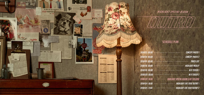 하이라이트의 스페셜 앨범 'OUTRO'의 스케줄 플랜이 공개되었다.