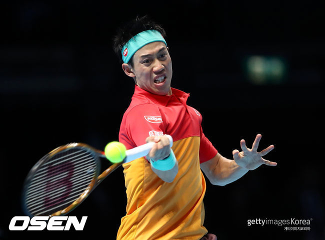 니시코리는 12일(한국시간) 영국 런던서 열린 남자프로테니스(ATP) 파이널스 1라운드 레이튼 휴이트조 경기서 세계랭킹 3위 페더러를 2-0(7-6(4), 6-3)으로 꺾고 첫 승을 따냈다.