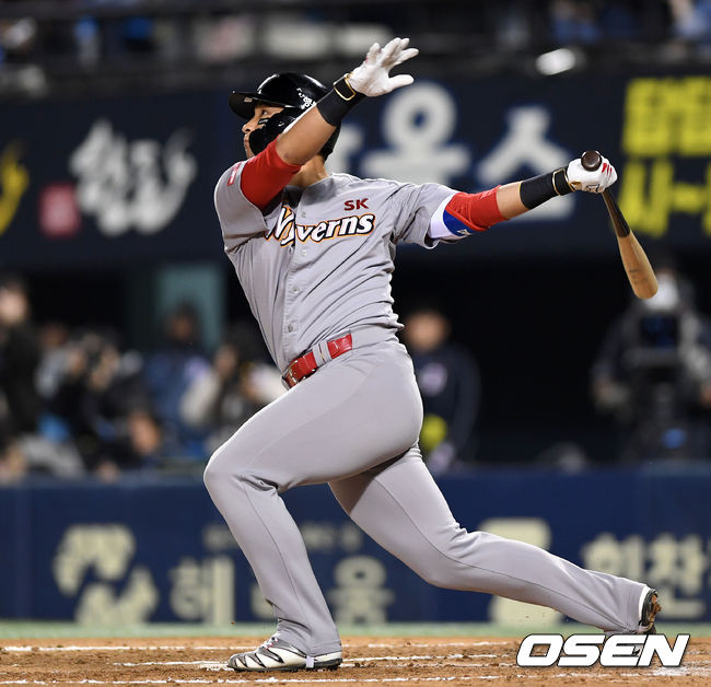 SK 내야수 강승호가 한국시리즈 첫 홈런 손맛을 봤다.