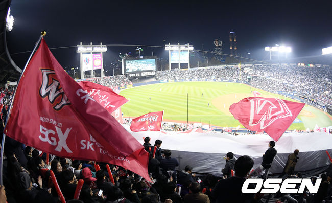 12일 잠실구장에서 열린 SK 와이번스와 두산 베어스의 한국시리즈 6차전에 2만5000명 만원관중이 가득 들어찼다. 한국시리즈 6경기 연속 매진. 이날까지 올해 KBO 포스트시즌은 16경기에서 총 완중 31만5260명을 모았고, 입장수입은 총 103억7295만9000원으로 나왔다.