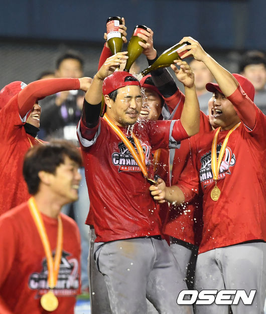 한동민은 "우승하고 싶다고 말로만 하면서 다른 팀이 하는 것을 봤는데, 진짜 하니까 그 이상으로 좋은 것 같다. 처음에는 꿈인 것 같았다. 외야에서 광현이 형이 잡고 뛰어가는데 거리가 안 좁혀졌다. 빨리 가서 부둥켜 안고 싶었는데, 하루 종일 뛰는 것 같았다. 결국 같이 우승을 만끽했다"고 미소를 지었다. 이어서 그는 "내가 한국시리즈 MVP 받고, (문)승원이가 데일리 MVP 받았다. 둘이 1989년 동기인데 친구끼리 마무리 잘해서 좋다"고 활짝 웃었다. /bellstop@osen.co.kr