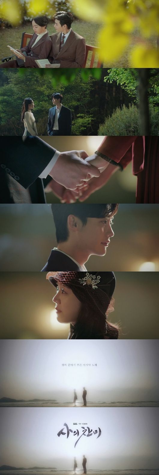 공개된 ‘사의찬미’ 1차티저는 잔잔하고도 애처로운 피아노 선율로 시작된다. 이어 우리가 익히 알고 있는 ‘사의 찬미’ 가사를 읊조리는 신혜선의 내레이션이 들려온다. “광막한 광야를 달리는 인생아. 너의 가는 곳 어데냐”. 곧바로 낭만적이고도 뭉클한 이종석의 내레이션이 이어진다. “삶에 열중한 가련한 인생아. 너는 칼 우에 춤추는 자도다”.