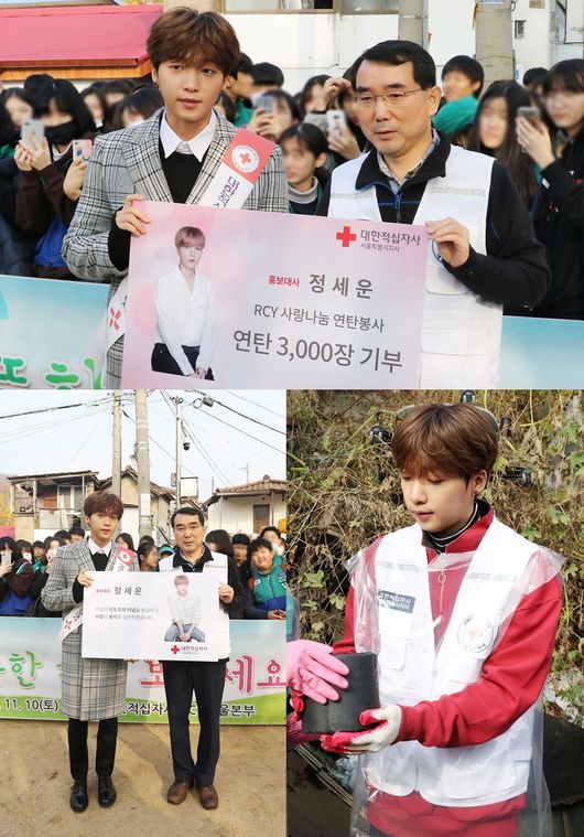 스타쉽엔터테인먼트 측은 "정세운이 지난 10일 대한적십자사 서울특별시지사의 홍보대사로 위촉, 사랑 나눔 연탄 봉사에 참여하고 연탄 기부에 동참했다"고 13일 밝혔다.