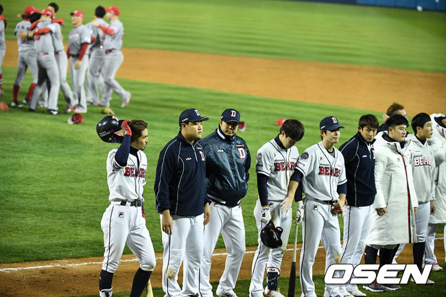 김재환이 부상으로 빠진 공백이 크다고 해도 정규시즌 3할 타자, 10홈런 이상 타자들이 주전 라인업 대부분이다. 한국시리즈에서 최주환(타율 .478)과 양의지(타율 .450)가 중심축으로 활약했다. 박건우(24타수 1안타 9삼진)와 오재일(16타수 2안타 8삼진)이 숱한 찬스에서 안타 1개만 쳤더라도 승패 자체가 달라졌을 것이다.