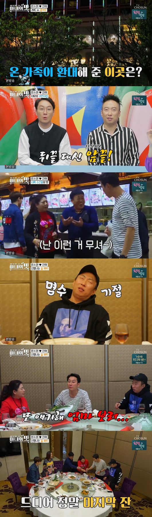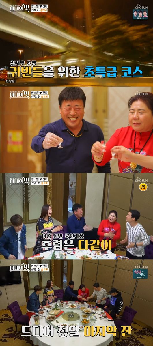 13일 방송된 TV조선 예능 ‘아내의 맛’에서는 함소원·진화 부부의 중국 광저우 집이 공개된 가운데 MC 박명수와 이휘재가 직접 이곳을 방문해 부모님을 만났다.