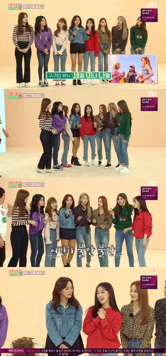 13일 오후 방송된 JTBC 예능 ‘아이돌룸’에는 새 앨범으로 컴백한 구구단이 완전체로 출연해 팬들의 시선이 모아졌다.