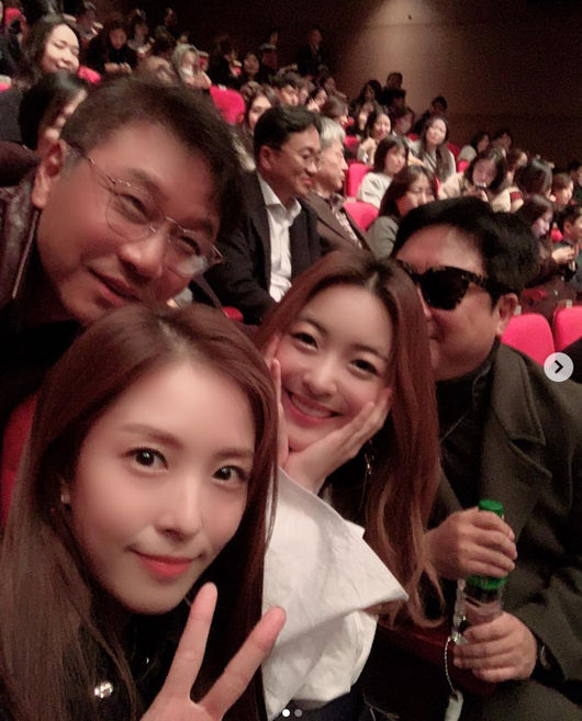 사진 속에서 보아는 SM엔터테인먼트의 수장 이수만과 걸그룹 f(x)의 루나, 이동우와 함께 사진을 찍고 있는 모습이다.