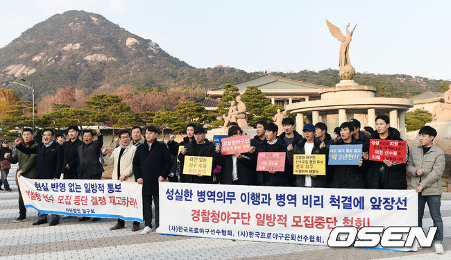 사단법인 한국프로야구선수협회와 사단법인 한국프로야구은퇴선수협회를 비롯한 야구인들이 14일 서울 청와대 앞으로 모였다.