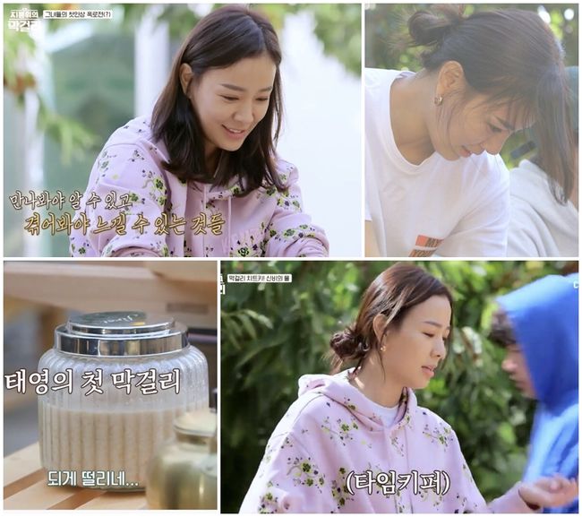 손태영은 14일 방송한 채널A 막걸리 양조 예능 ‘지붕 위의 막걸리’에서 부지런한 만능 일꾼으로 맹활약을 이어갔다. 지막리의 둘째 날, 이혜영-이종혁-김조한-소녀시대 유리와 함께 홍국쌀을 이용한 ‘레드 막걸리’ 양조에 도전한 손태영은 ‘물맛’을 위해 직접 길어온 물 30리터를 대령하는 정성을 드러냈다. 나아가 쌀 불리는 시간과 누룩 발효 등 시간을 철저히 엄수하는 모습으로 지막리 ‘타임 키퍼’에 등극, 새로운 캐릭터를 획득했다.