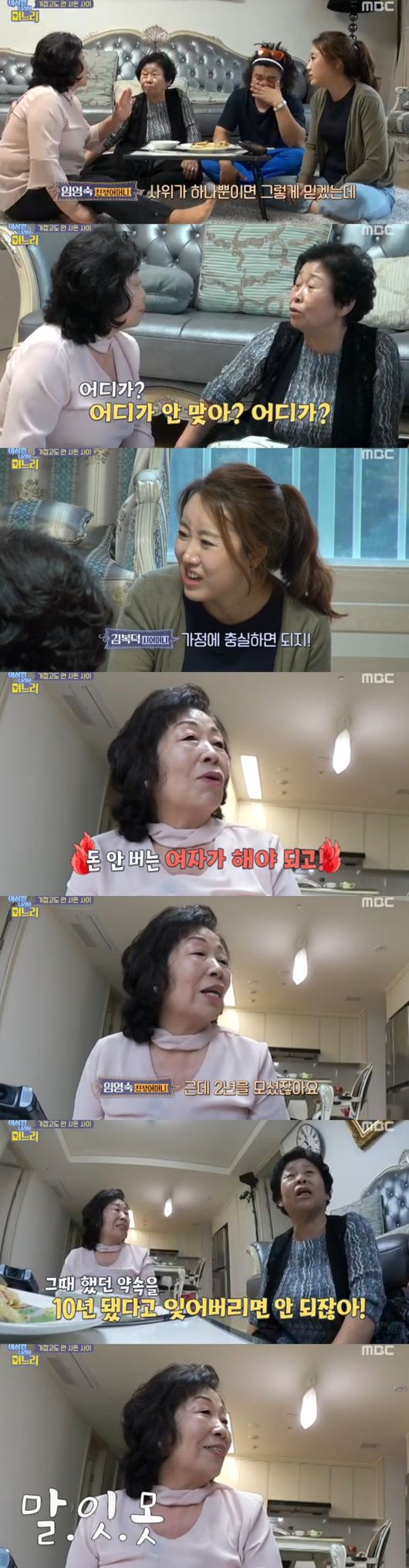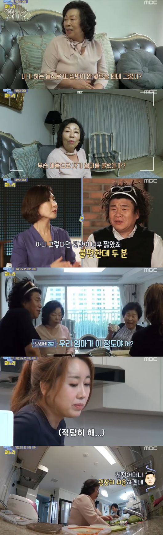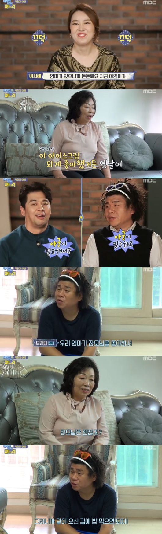 이어 장모는 "사부인이 참 성격이 좋으시다"고 했다. 정태는 "근데 왜 우리 엄마가 화를 낸다고 하는지 모르겠다"며 아영을 언급, 장모는 "며느리에겐 감정이 있을 것, 화낸지 안 낸지 모르겠냐"며 아영을 지원사격했다.