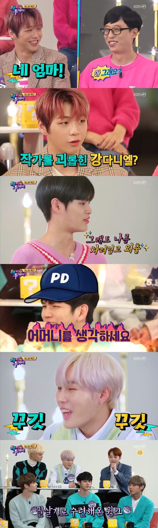 지난 15일 방송된 KBS 2TV '해피투게더'는 워너원 완전체가 출격하는 '워너원 특집'으로 꾸며졌다. 강다니엘은 "요즘 방송 욕심이 난다"며 숨겨둔 예능 욕심을 고백해 시선을 사로잡았다. 이어 그는 에피소드를 위해 친구들과 회의를 했었다며, 에피소드가 떠오를 때마다 작가님께 계속 전화를 드렸다고 '에피소드 집착남'의 면모를 과시했다.