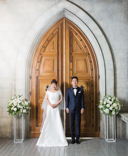 러블리한 드레스 자태를 뽐내는 홍윤화와 훈훈한 김민기의 모습이 담긴 웨딩화보였다. 수줍어하는 모습까지 고스란히 담긴 웨딩화보는 소문난 '잉꼬 커플'의 달콤하고 사랑스러운 분위기를 고스란히 담고 있었다.