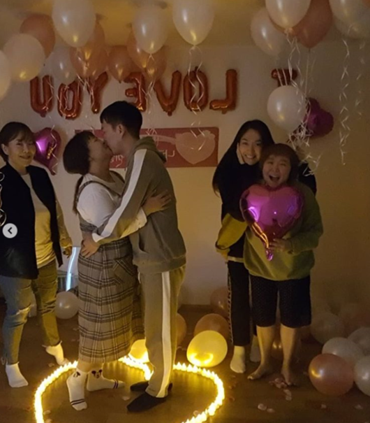 홍윤화가 공개한 사진에서 두 사람은 다정한 모습으로 사랑스러운 분위기를 만들어내고 있다. 홍윤화는 감동한 듯한 표정으로 김민기의 품에 안겨 있다. 특히 하트 모양으로 촛불 이벤트를 하며 함께 꼭 껴안고 미소 짓는 모습이 인상적이다. 홍윤화와 김민기가 입을 맞추는 장면도 담겼다.
