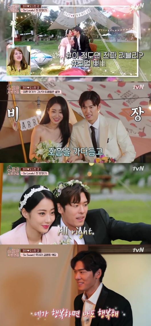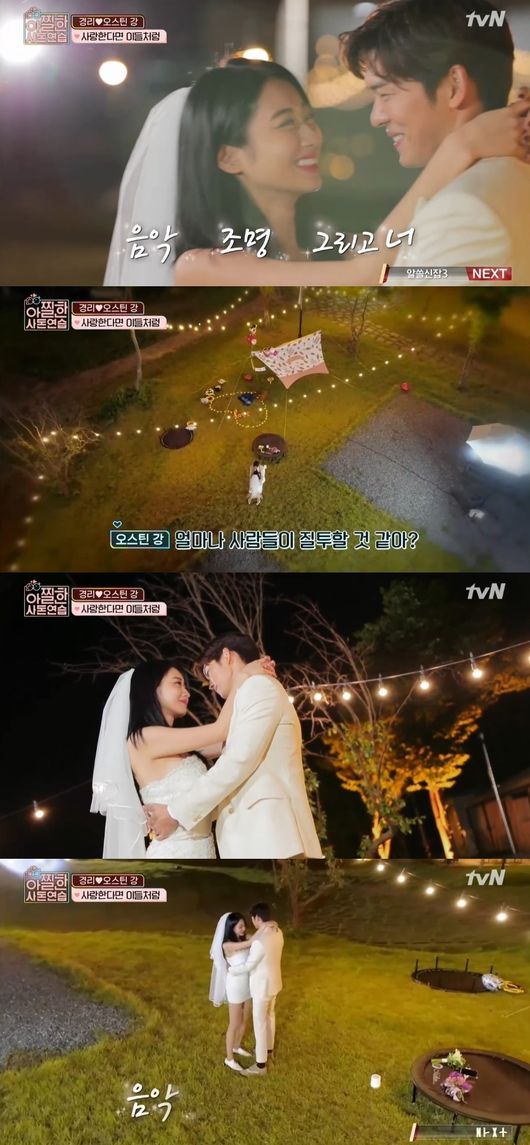 지난 16일 오후 방송된 tvN '아찔한 사돈연습'에서는 경리와 오스틴 강이 웨딩화보 촬영을 마쳤다. 경리와 오스틴강이 향한 웨딩화보 마지막 촬영 장소는 고급스러운 글램핑장이었다.