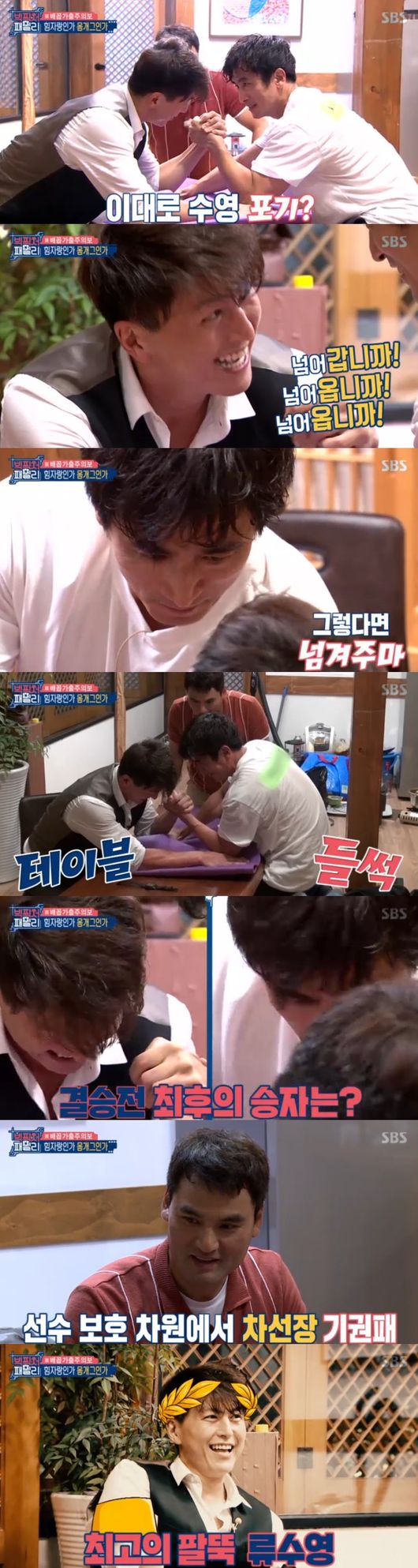 다음 결승은 류수영과 차인표가 하게 됐다. 류수영은 "한 번도 팔씨름 이긴 적 없다"며 경기에 임했다.