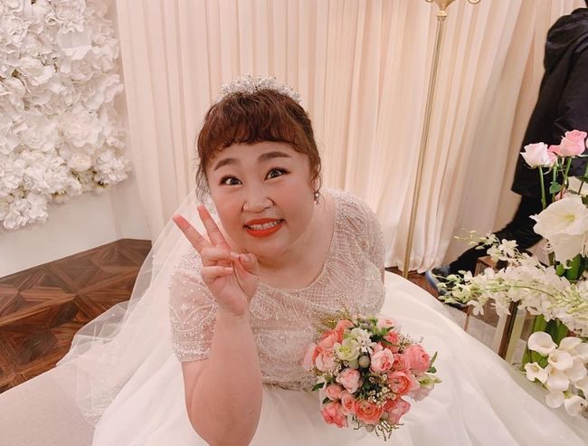 이국주는 17일 오후 자신의 인스타그램에 홍윤화, 김민기 커플의 결혼식 사진을 공개하고 결혼을 축하했다.