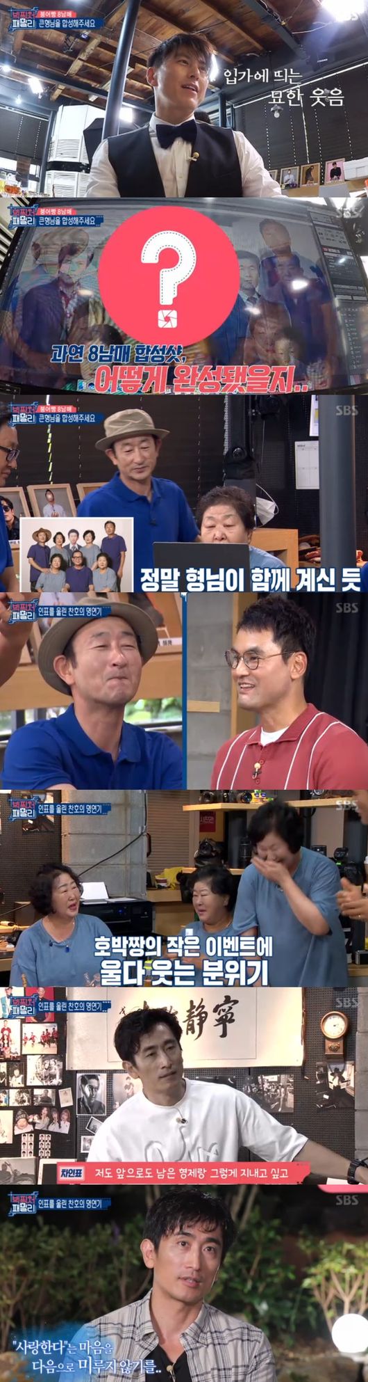 먼저 차인표는 7남매 손님들을 분장실로 안내했다. 그리고 옆에 있던 박찬호가 가족들을 챙겼고, 큰 오빠 합성 칸을 마련해주기 위해 박찬호가 함께 찍었다. 그리고 류수영이 포토샵을 맡았다. 정말 큰 오빠가 있는 것처럼 사진이 완성됐다. 박찬호는 큰 형이 온 것처럼, 큰 형을 대신해 동생들에게 메시지를 전했다. 동생들은 "진짜 오빠가 온 것 같다"며 눈물을 흘렸고, 작은 이벤트에 울다 웃는 분위기가 됐다. 차인표도 옆에서 보더니 "남은 형제랑 그렇게 지내고 싶단 생각이 들었다"면서 먼저 떠나보낸 동생들을 떠올리며 눈시울을 붉히면서 "인생이 길지가 않다, 그때그때 사랑한다는 마음을 후회없이 전하면 좋겠다 생각이 들었다"고 소감을 전했다.