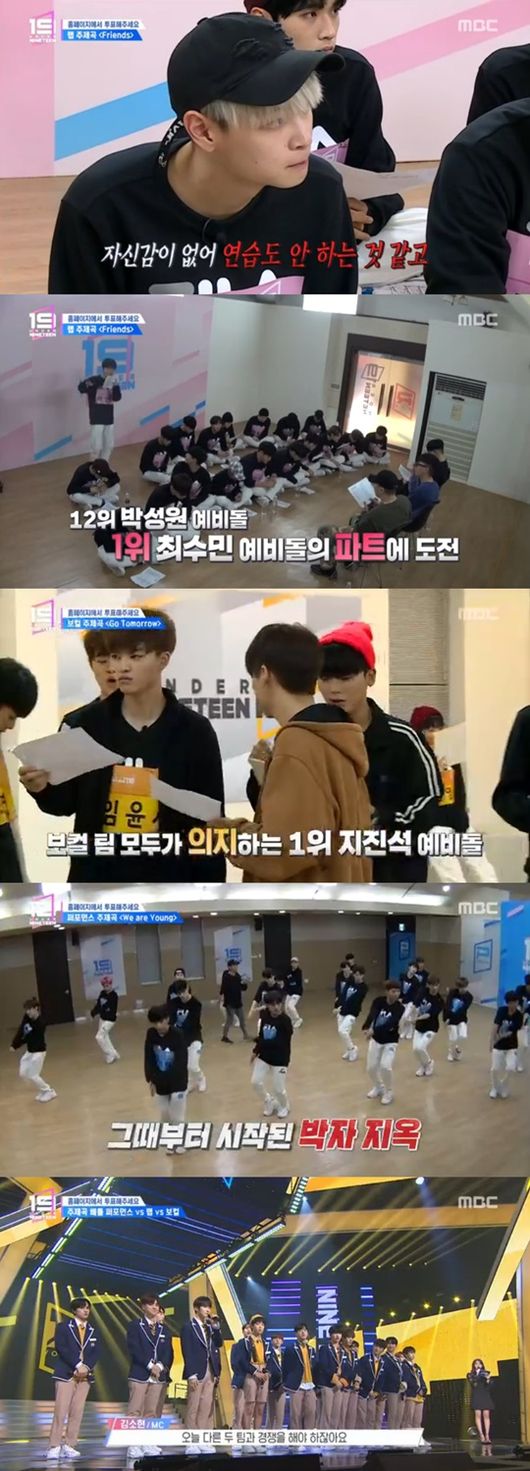 17일 오후 방송된 MBC 예능 프로그램 '언더나인틴'에서는 700여 명의 서포터즈 현장 관객의 투표를 받고 첫 팀전을 펼치게 되는 보컬팀, 랩팀, 퍼포먼스팀의 모습이 그려졌다.