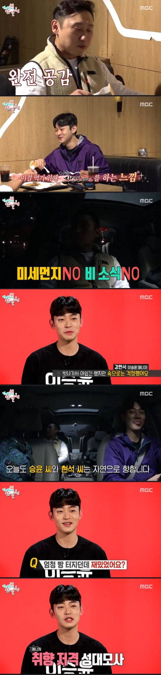 사실 강매니저가 원래 인기가 대단하다고 했다. 이승윤은 "어느날 음악 방송 앞을 지나가는데 팬들의 승윤이 아닌 매니저를 카메라로 찍고 있더라, 현석이가 고개를 숙이는데 다 찍고 있더라"면서 "당시 느낌 좋았다"며 에피소드도 전했다. 이승윤은 "내가 사람 보는 눈이 있었구나 싶다, 인복"이라면서 좋은 연예인 옆에 좋은 매니저가 있는 것이라 훈훈함을 전했다.