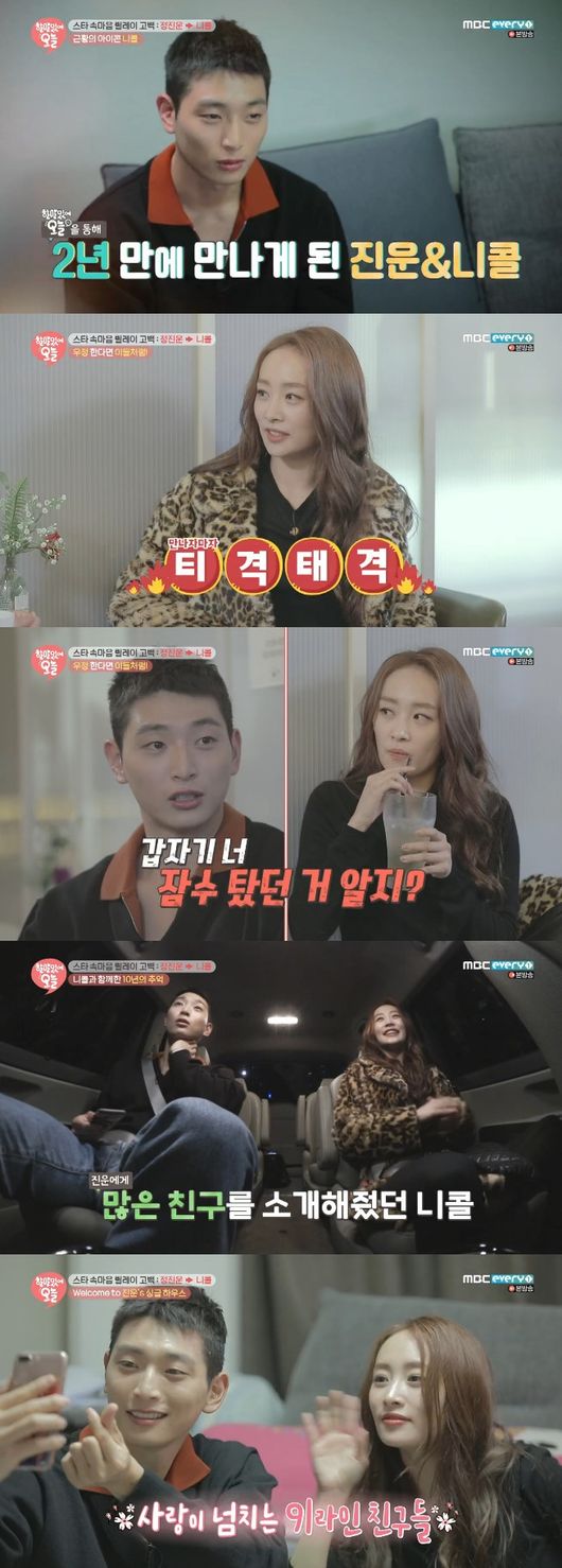 정진운과 니콜은 데뷔 초부터 지금까지 10년 간 우정을 이어온 동갑내기 절친으로 정진운은 2년 전 니콜이 갑자기 연락두절된 이후 오랜만에 다시 니콜을 만나 그간의 회포를 풀었다. 정진운은 “저는 친구들이 중요한데 그동안 어디서 어떻게 사는지도 모르고 어디있는지 조차 몰랐던 친구가 니콜이었다. 2년 만에 만난 것 같다”고 밝혔다.