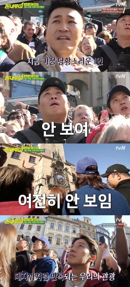 지난 17일 오후 방송된 tvN '짠내투어'에서 체코 프라하에서 첫째날 투어를 마무리하는 박명수, 박나래, 정준영, 김종민, 하니, 문세윤, 허경환의 모습이 그려졌다. 이들은 설계자인 김종민의 안내에 따라서 알차게 프라하를 여행했다.