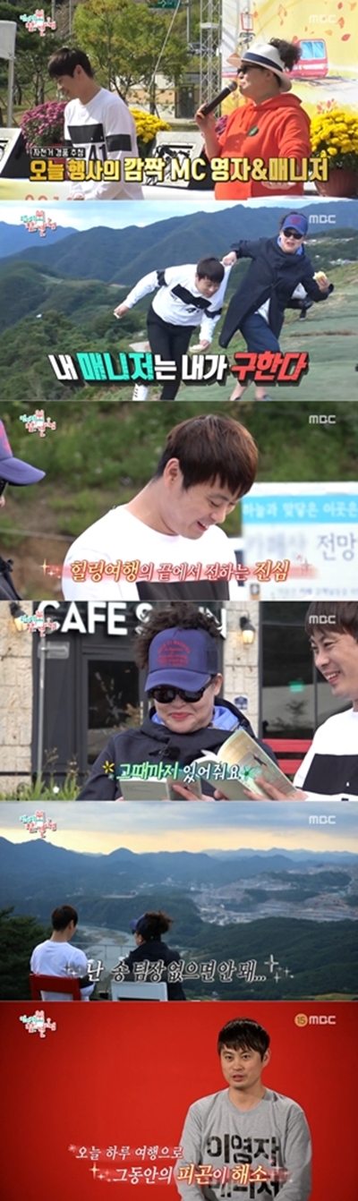 이어 매니저는 자도 괜찮다는 이영자의 말에 숙면에 빠졌고 이를 본 이영자는 비로소 자신에게 마음의 문을 연 것 같다는 느낌을 받았다고 전해 훈훈함을 자아냈다. 매니저는 이영자와 함께한 ‘힐링 여행’에 대해 “서울에서 겪었던 모든 것들이 쑥 내려가는 느낌이었다”며 “하루가 굉장히 행복했다”고 말해 의미를 배가시켰다.