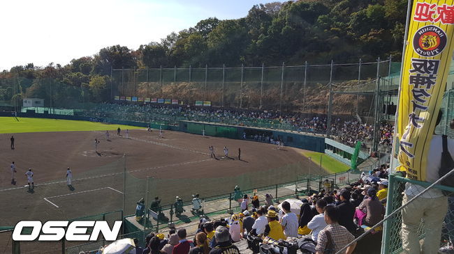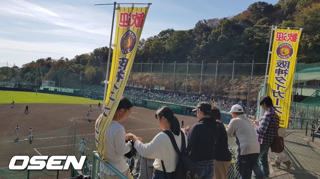 마무리 캠프 특성상 1군 주전 선수들은 대거 제외된다. 일본도 마찬가지. 저연차의 신예 선수, 1군에서 별로 뛰지 못한 선수들이 주로 참가한다. 연습경기를 앞두고 아키 타이거스 스타디움에는 수 많은 야구팬들이 찾아왔다. 어린이들이 포함된 가족, 젊은 여성들, 50~60대 등 다양했다. 저마다 한신 유니폼, 모자, 응원막대 등 정성도 대단했다. 이날 2000명 가량의 팬들이 찾아 연습경기를 즐겼다.