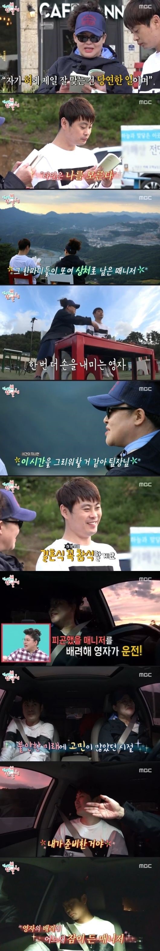 서울로 돌아가는 길은 이영자가 직접 운전대를 잡았다. 모두 매니저 송팀장을 배려한 행동이었고, 송팀장도 이영자가 많이 편해졌는지 옆자리에서 살짝 잠이 들었다.