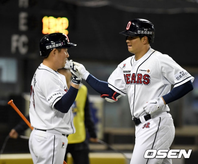 그러나 개인 타이틀이 하나도 없다는 게 아쉽다. 타율과 출루율 2위에 오른 게 최고다. 규정이닝 포수 중 도루 저지율 1위(.378)에 빛나지만 시상 기록은 아니다. 역대 MVP 수상자 중 개인 타이틀이 하나도 없는 선수는 없었다. 그런 점에서 양의지가 불리하지만 공수를 통틀어 팀 공헌도로 보면 김재환에게 뒤지지 않는다.