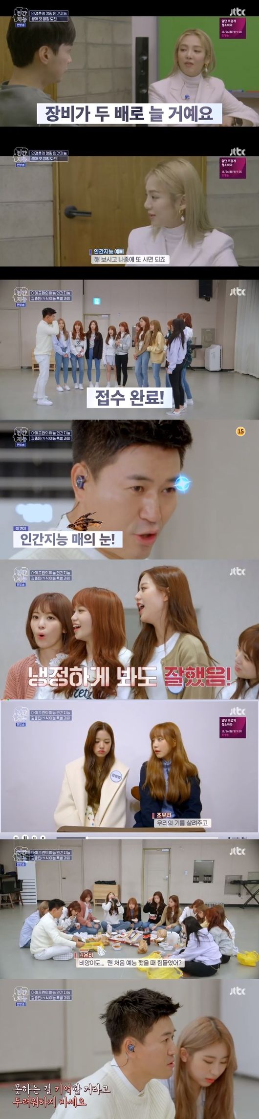 비앙은 아이즈원을 위해 예능에 적응하는 법, 애교, 개인기 점검 등을 했고, 예능 MC들의 스타일도 알려줬다.