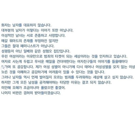 이어 그는 "미안해 오해가 조금이나마 풀렸으면 좋겠어. 나머지 비판은 겸허히 받아들이겠다"고 덧붙였다. /jeewonjeong@osen.co.kr
