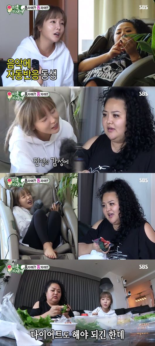 앞서 홍진영은 '미운 우리 새끼'에 출연해 친언니와 각별한 사이임을 밝힌 바 있다. 5살 터울의 가장 친한 친구이자 엄마 같은 언니라는 것. 실제로 홍선영은 마치 엄마처럼 동생 밥을 살뜰히 챙기며 폭풍 잔소리를 했다. 티격태격하며 '현실 자매'의 실상을 제대로 보여준 두 사람은 배달 음식을 기다리는 동안 TV에 나온 노래에 맞춰 함께 노래를 불렀다.