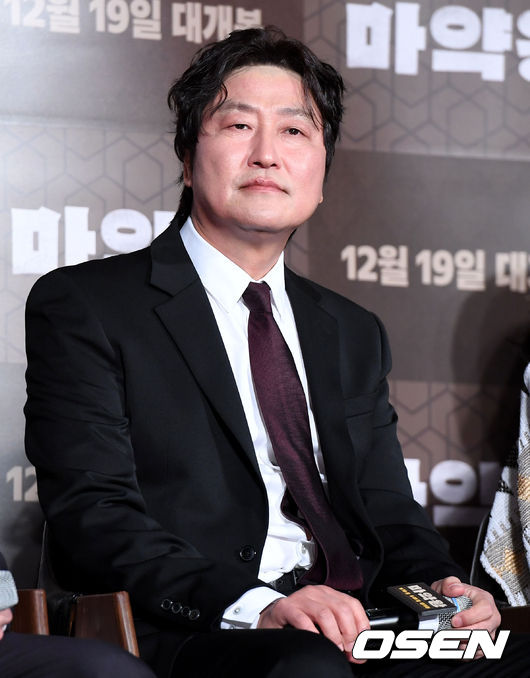 송강호는 19일 오전 서울시 광진구 자양동 롯데시네마 건대입구에서 진행된 영화 '마약왕'(감독 우민호, 12월 19일 개봉) 제작보고회에서 "1년 4개월 만에 인사드리는 것 같다. 마약왕 이두삼 역을 맡았다"고 인사했다.