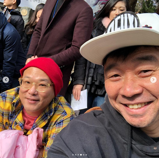 사진 속에서 강원래는 고 김성재의 동생 김성욱과 함께 사진을 찍고 있는 모습이다.