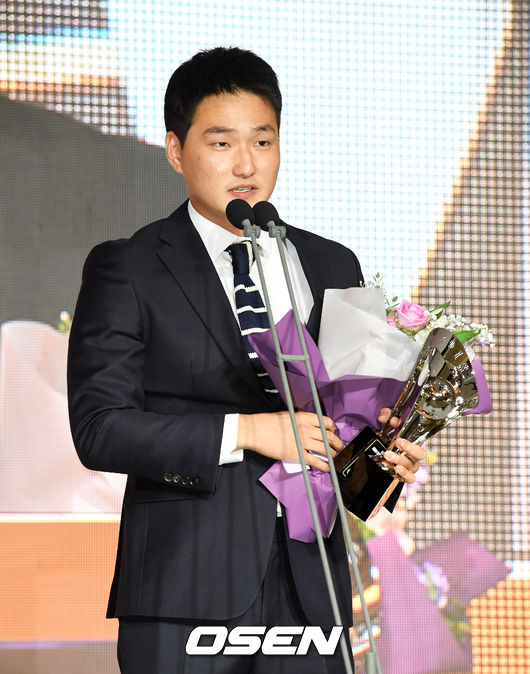 전상현은 "이런 자리에서 상을 받아서 영광스럽고 감사드린다. 2년 동안 신경써준 박치왕 감독님을 비롯 코치님들께 감사드린다. 앞으로 KIA에서 좋은 모습 보여드리겠다"고 소감을 전했다. / bellstop@osen.co.kr