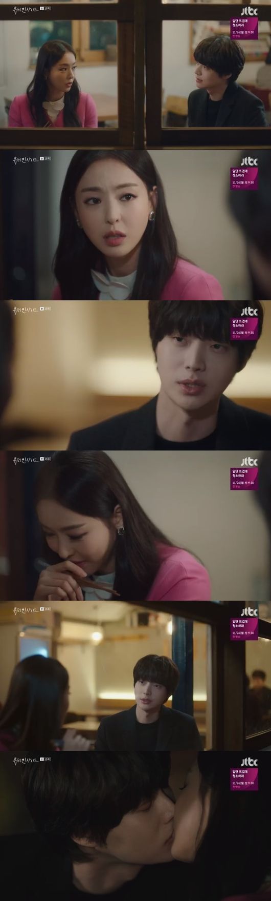 19일 오후 방송된 JTBC '뷰티 인사이드'에서는 류은호(안재현 분)가 강사라(이다희 분)에게 로맨틱한 첫 입맞춤을 했다.